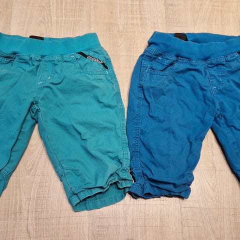 Kahdet Villervallan polven alle ulottuvat shortsit koossa 116. Paksumpaa canvaskangasta, hyvät ulkokäyttöön. Käyttämättömän oloiset, ei päässeet meillä käyttöön.