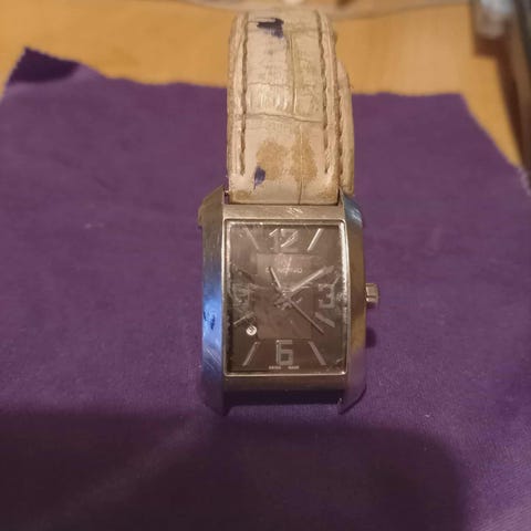 Yksinkertaisen tyylikäs ja elegantti Komono watch quartz-koneistolla. Paristo juuri vaihdettu ja ranneke käyttämätön. Toimii hyvin ja on valmis käytettäväksi. Kellon halkaisija on n. 37 mm ilman nuppia.