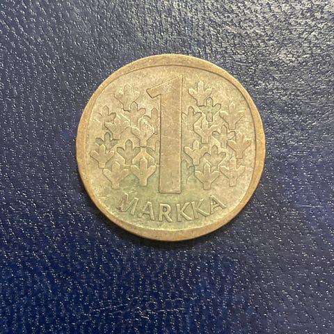 Suomen tasavalta 1 markka -kolikko vuodelta 1975.