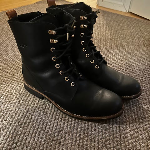 Naisten Panama Jack laadukkaat nahkaiset kengät koko 41. Malli Lilian Igloo B3. Väri musta ja sisällä lämmin vuori. Sisäsyrjällä vetoketju, ja nauhoituksella voi säätää istuvuuden. Valmistettu Espanjassa. Olleet jalassa vain pari kertaa, kunto on todella hyvä.