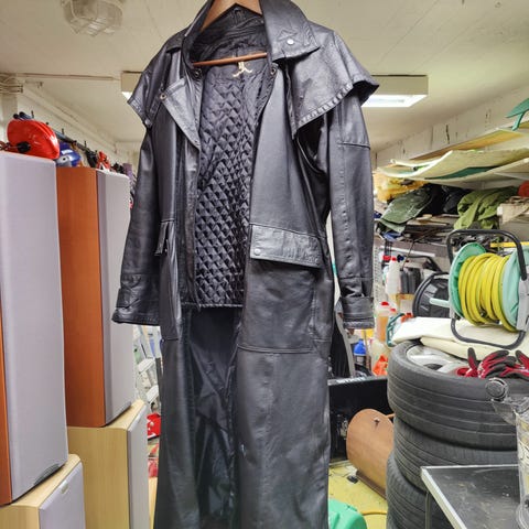 Tuff Rider nahkatakki, musta ja oranssi väri, valmistettu nahasta. Takissa on vetoketjulliset taskut ja vyötäröllä säädettävät hihnat. Takki sopii miehille. Koko XL