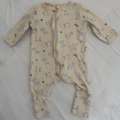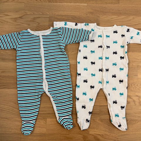 Pehmeää puuvilla ja luomupuuvilla kangasta, edessä vetoketju. Käännettävät lahkeet sukiksi.