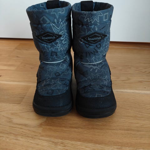 Oikein hyvässä kunnossa olevat mustat Kuoma talvikengät kokoa 25. Karvavuori ehjä, pohjat ei juuri kuluneet. Ei ole paljoa käytetty. Kokolappu nimikoitu ja nimi sutattu yli.