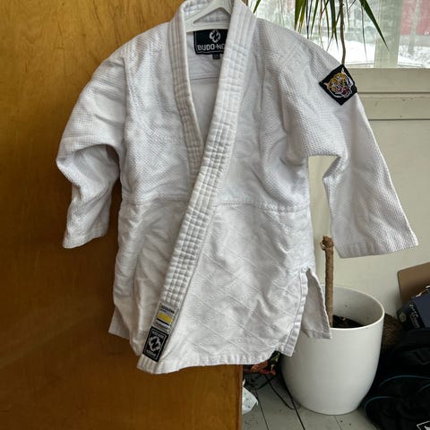 Myydään siisti ja ehjä, yhdellä lapsella käytössä ollut GI-puku käyttämättömällä valkoisella vyöllä. Gi:n koko on 110-120.