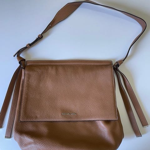 Myydään uudenveroisessa kunnossa oleva Michael Kors nahkainen olkalaukku kultaisilla metalliosilla.