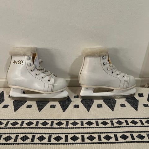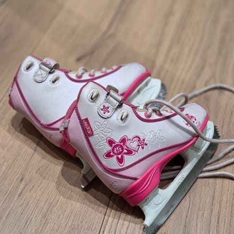 Lasten luistimet koko 29/32 jalan pituus 18.8-22.2cm. Valkoinen ja violetti värinä.