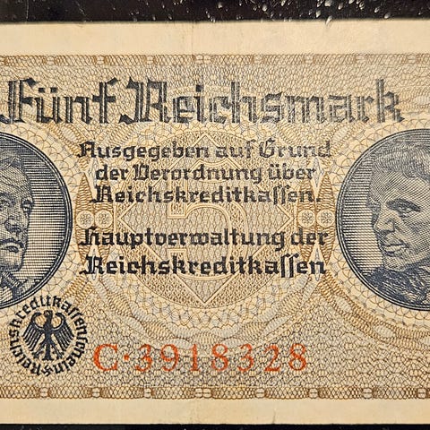Ruotsin 5 kruunun seteli 1949. Tuhkakuppi kuin uusi