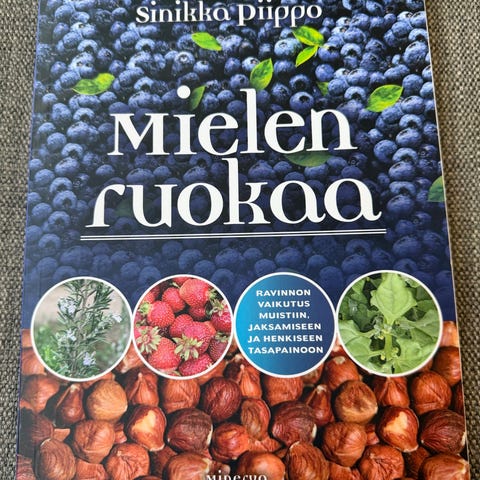 Sinikka Piippo Mielen ruokaa kirja, joka sisältää tietoa marjoista, mauista, siemenistä ja villiyrteistä. Kirjassa on kuvitettuja sivuja ja ohjeita luonnonantimien hyödyntämiseen ravinnossa.