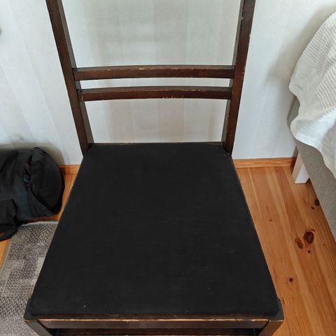 Myynnissä hieno, entisöity tuoli.Paljon koristeellisia yksityiskohtia.Istumakorkeus 50cm, syvyys 45cm, istuimen etuosa leveys 45cm. Etujaloissa pienet renkaat alla.
