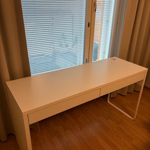 Myyntiin ylimääräiseksi jäänyt Ikea micke - työpöytä. Yleisilmeeltään siisti, mutta kannessa ainakin yksi minijälki (kts. kuvat).