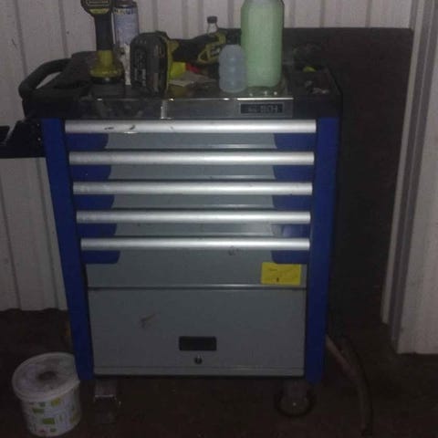Täysin kunnossa mukaan useita piikkejä ja talttoja sekä kokonaisuus kätevässä liikuttelukärryssä