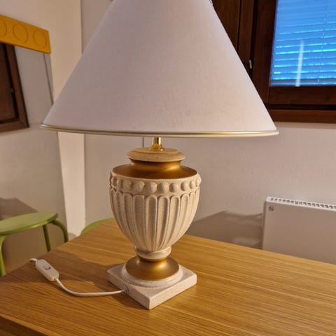 Pöytävalaisin. Korkeus 65 cm ja varjostimen leveys 40cm. Nouda Laaksolahdessa.