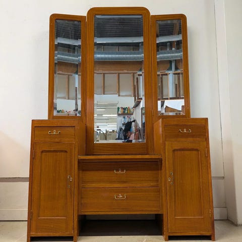 Komea 40-luvun funkkis henkinen peilikaappi myytävänä. Yleiskunto ikäisekseen hyvä. Ovet ja laatikko toimivat hyvin. Ei hajuja. Rakenne tukeva. Peili irroitettava.