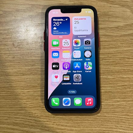 Myydään iphone 13 128 GB, täysin toimiva ja ehjä. Mukaan saa laturin ja parit kuoretkin löytyy. Mieluiten nouto, mutta kulkeutuu myös omien menojen mukaan Kemi–Tornio alueella. (tulevana sunnuntaina meno myös Rovaniemelle) Lisätietoja saa yv!