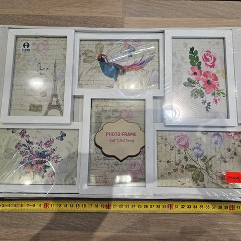 Monelle 10x15cm kuvalle. Koko noin 56x44cm. Joku kulma hieman ehkä naarmuuntunut vaikka muovit päällä.