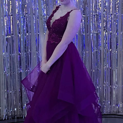 Teetetty, uniikki vanhojentanssimekko vannehameella. Satiinikangas alla on shamppanjan värinen ja päällä persikkainen tylli. Vyötäröllä ja yläosassa koristekiviä. Sydämenmuotoinen kaula-aukko, ei olkaimia. Koko on noin xs, mutta selässä on vyötäröön asti vetoketju ja yläosassa nyörit, jolloin sopii varmasti myös s. Olen 166cm ja käytin 9cm korkoja, jolloin helma ylsi juuri lattian yläpuolelle.