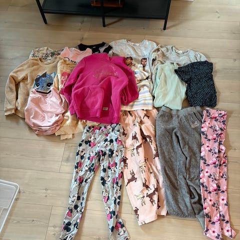 7 paitaa, leggingsit ja haalari kokoa 134-140.