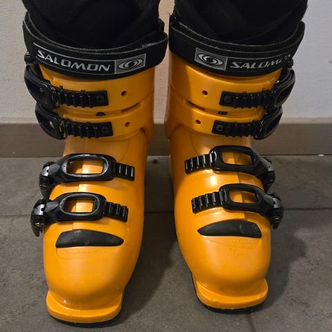Salomon laskettelumonot XMAX90W, väri valkoinen/turkoosi. Napakka malli! Ollut käytössä aikuisella.