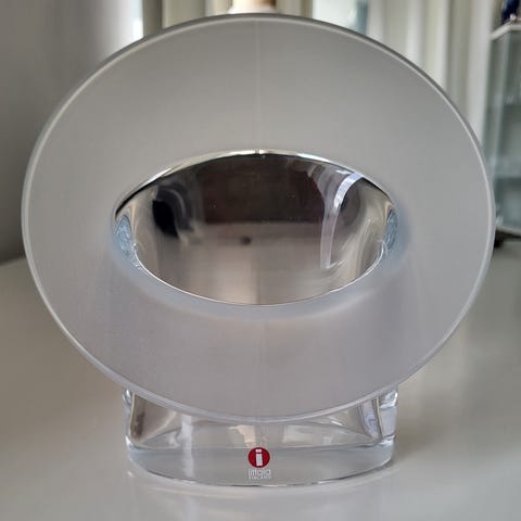 Iittala Marcel maljakko. Maljakko on valmistettu kirkkaasta ja huurretusta lasista.