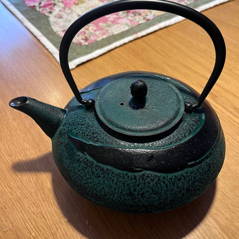 Valurautainen teepannu ja kupit