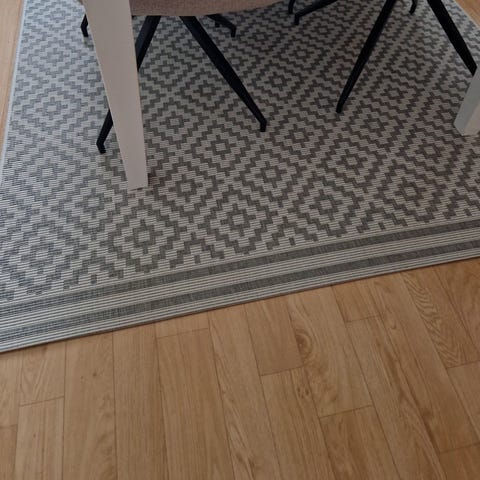 Muutoin hyvä kerman värinen matto, mutta kaipaa pesua.