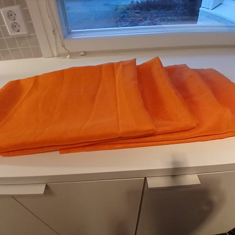 Keltaiset valoverhot. Ensimmäisessä kuvassa verhojen väri oikein