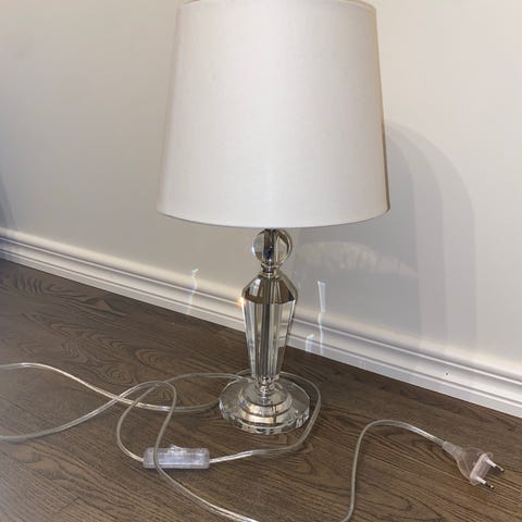 Myynnissä uudenkuntoinen tinanvärinen pöytalamppu. Korkeus 24.5 cm, halkaisija 11 cm.