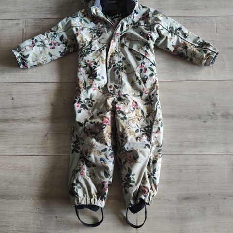 Molo kids toppahaalari koko 104cm. Ostettu meille viime kevättalvella. Ollut käytössä noin 5 kuukautta. Ei ole pesty kertaakaan. Haalarissa kuitenkin pieniä käytönjälkiä 2 naarmua huomasin joista kuvat. Heijastinnauhoissa kulumaa. Siisti ja lämmin toppahaalari.