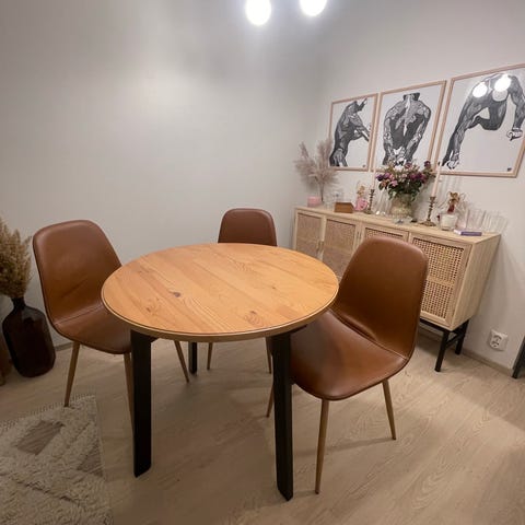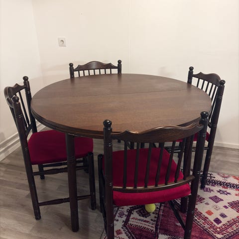 Myydään pyöreä 110cm pöytä ja 4kpl tuoleja muuton alta pois!