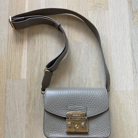 Furla Metropolis Mini Crossbody laukku, väri musta. Laukussa irrotettava ketjuolkain, sisällä tekstiilivuori ja avotasku. Lukko hieman kulunut, näkyy kuvassa. Mukaan paperikassi ja dustbag. Mitat n. 13x17x7cm.