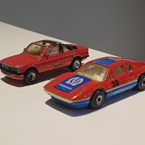 Matchbox Superfast AMX Javelin vuodelta 1972 ja Rolamatics Stoat vuodelta 1973. Ikäisekseen varsin hyväkuntoisia.