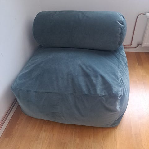 Hyväkuntoinen sininen Fatboy lattiatyyny, kankaat ehjät.