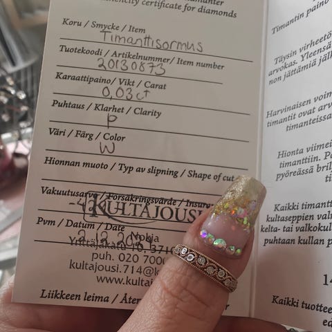 Myydään timanttisormus kultajousesta vakuusarvo 599,-
