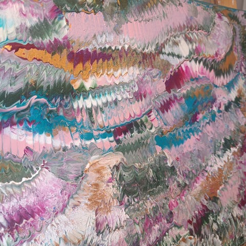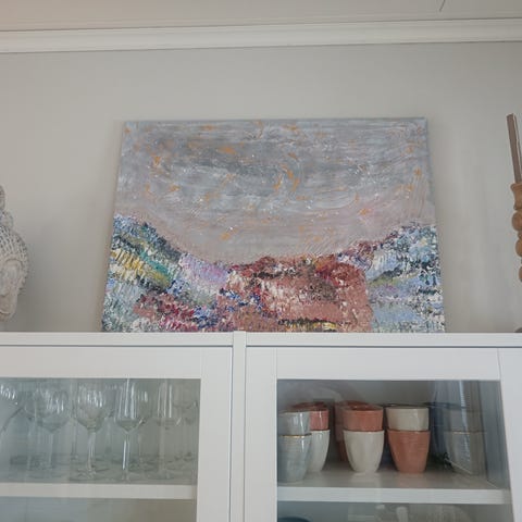 Upea,herkkä ja rauhallisella väreillä,myyjän itsensä maalaama akryylityö kanvaalle.