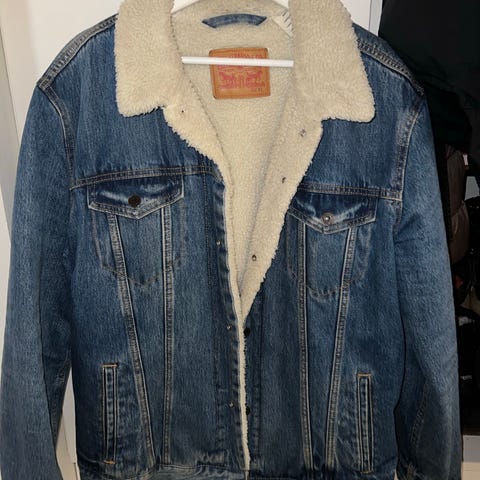 Levi's Denim takki sinisessä värissä, koko S. Takki on valmistettu denim-materiaalista ja soveltuu miehille. Sisäpuolella on lämmin karvavuori. Itse ei sovi mulle enään kun olen 183cm mies. Ostin kampista levis kaupasta ehkä kuusi vuotta sitten.