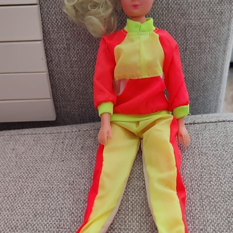 Siisti ja ehjä nukke. Alkuperäinen mekko päällä. Kengät puuttuvat.