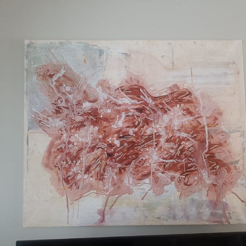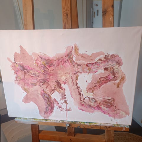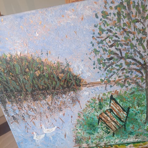 "Oma hetki"-akryylityö kuvaa hetkeä,kun tarvitsee omaa aikaa ja tilaa. Maalaus herkkä ja kaunis,raikkaat värit. Myyjän itsensä maalaama.