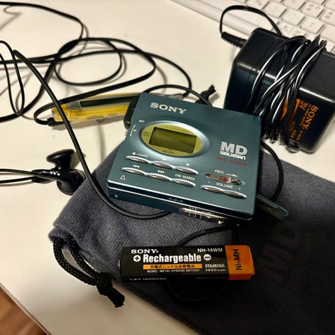 Myynnissä Sonyn kannettava Minidisc Walkman. Laite tukee NetMD:tä joten kappleiden lataaminen levyille sujuu helposti yhteisön ylläpitämän Web Minidisc verkkosivun avulla. Lisäksi laite tukee optista äänisisääntuloa, joten saat nauhoitettua kappaleet myös perinteisin metodein. Mukana kuulokeohjain (toisesta soittimesta, toimii tarpeeksi hyvin tämän kanssa) ja kolme 74 minuutin levykettä.