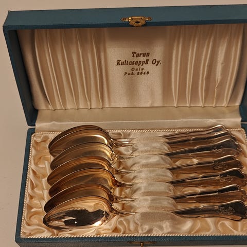 Kultakeskuksen Chippendale hopea-aterimet. 6kpl ruokahaarukoita (kultakeskus tuotekoodi 311-105), 6kpl ruokaveitsiä (kultakeskus tuotekoodi 411-105). Käyttämättömät, alkuperäisessä siistissä pakkauksessa.