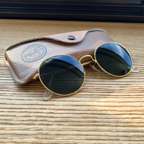 Harvinaiset 1988 vuoden jämäkät aurinkolasit nahkapussilla. Mallia unisex. Toisessa linssissä kaksi erittäin pientä hiusnaarmua, näkyy vain tietyssä kulmassa ja valossa. Ei vaikutusta käyttöön.