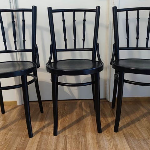 7 kpl keskenään erilaisia wieniläistuoleja. Myydään ensisijaisesti yhtenä pakettina, jolloin hinta yhteensä 150€. Nouto Espoon Olarista.