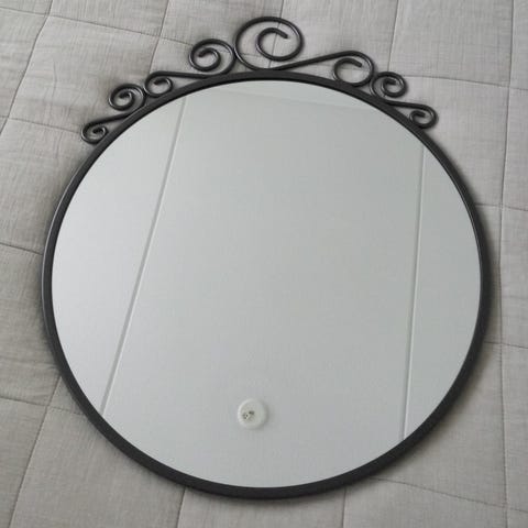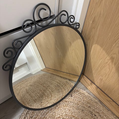 Myydään IKEA EKNE soikea koristeellinen seinäpeili, jossa musta koristeellinen kehys. Peili sopii seinälle ripustettavaksi ja toimii sisustuselementtinä.