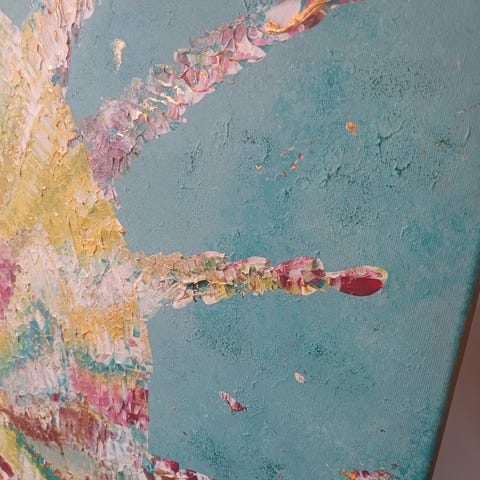 Upea,henkeäsalpaava värimaailma! Slmäterä sisustukseen:) Akryylityö kanvaalle,myyjän itsensä maalaama.
