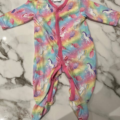 Yksisarvinen haalari/pyjama luomupuuvillasta