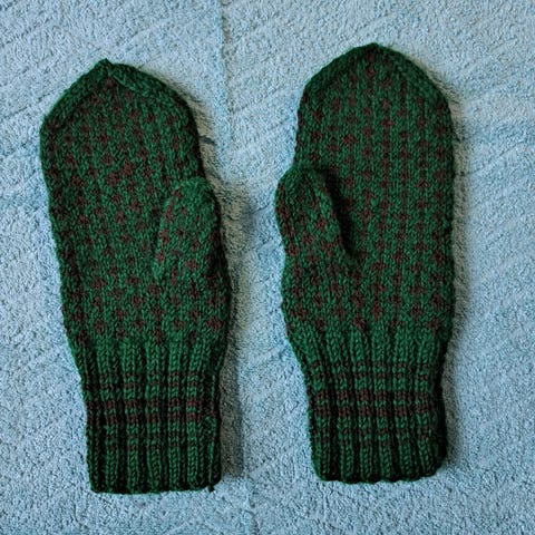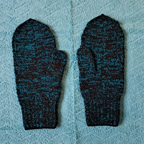 Kuvan käyttämättömät käsin neulotut rukkaset, mustat, koko 8/9.