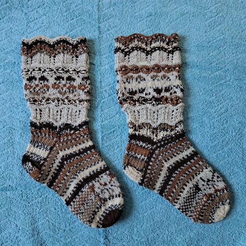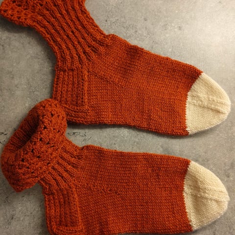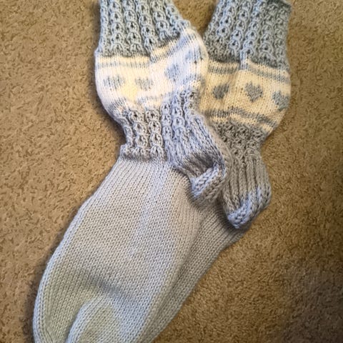 Kuvan käyttämättömät/uudet käsin neulotut villasukat, koko 38.