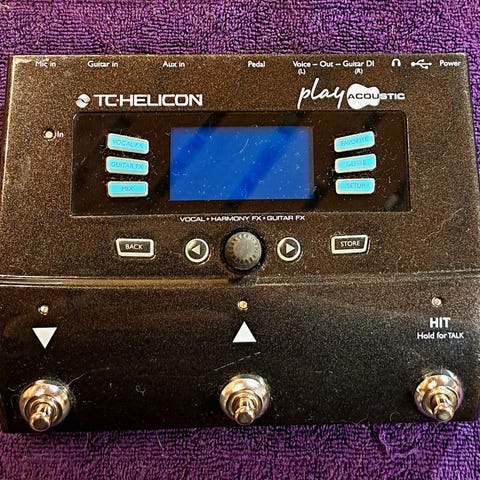Myydään TC-Helicon Play Acoustic -laulu- ja akustisen kitaran efektipedaali. Laite on hyväkuntoinen ja täysin toimiva, ollut keikka- ja treenikäytössä.