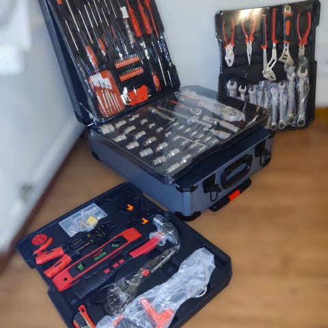 Työkalusarja sisältää erilaisia adaptereita ja C-puristimen, jotka soveltuvat puslan irrotukseen ja asennukseen. Sarja toimitetaan muovisessa säilytyslaatikossa, joka helpottaa työkalujen järjestämistä ja kuljetusta.