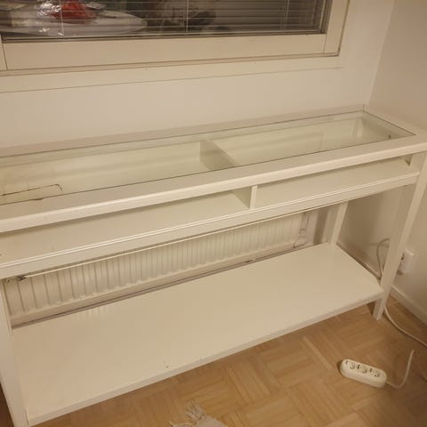 Ikean hylly laatikoilla ja Ikean kalustejaloilla.