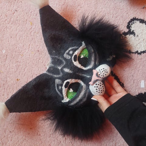 Eläinmaski pehmusteella ja kuminauhalla mutta saattaa olla vähän kireä